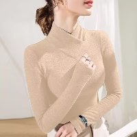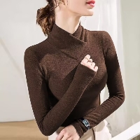 2025款洋氣減齡螺紋德絨長袖打底衫,秋冬新款,設計感半高領內搭外穿