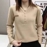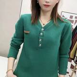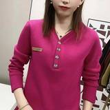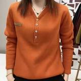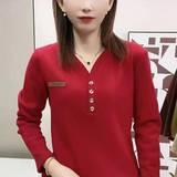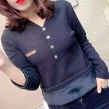 加厚加絨洋氣媽媽秋冬新款長袖顯瘦V領上衣女時尚百搭T恤打底衫
