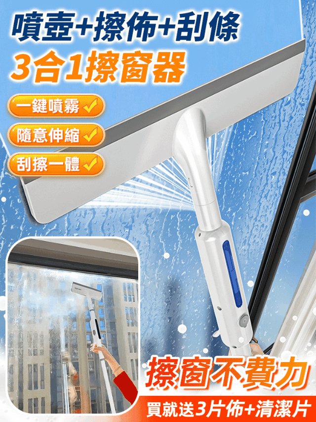 【掃除必備】家裡玻璃不好擦!免攀爬免伸手,安全輕鬆擦窗!用這個三合一擦窗器 一塗一刮,輕鬆擦玻璃,不留水漬 自由伸縮悍 不限高低遠近 全面清潔 不止於擦窗,玻璃/磁磚等地方 通通搞定!