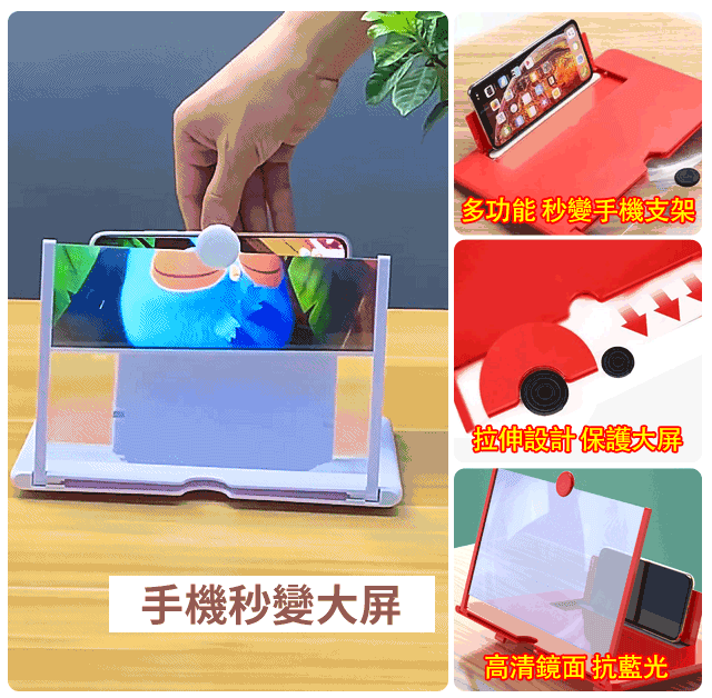 【手機秒變電影院】12吋手機支架螢幕放大器 防輻射抗藍光,保護眼睛,手機螢幕放大5倍,追劇更盡興!可折疊設計,輕薄便攜,矽膠墊設計更防滑!
