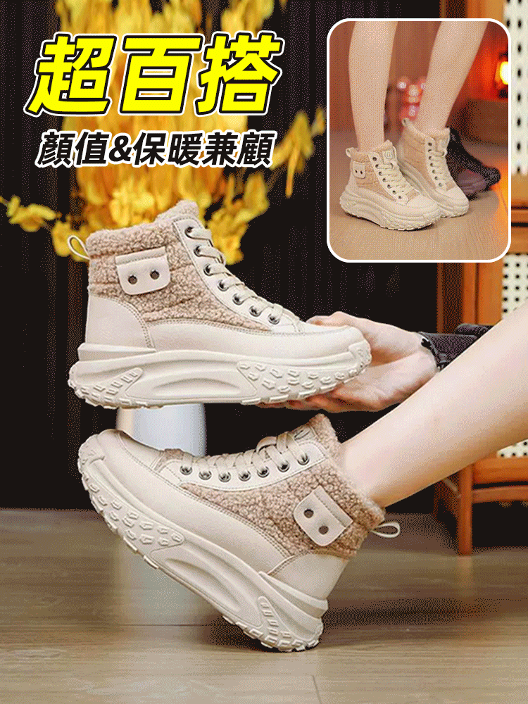 羊羔絨時尚厚底鞋 超軟大底走久不累 足弓矯正 運動緩震雙護腳 絨面溫暖裹踝 穿著輕盈又貼心