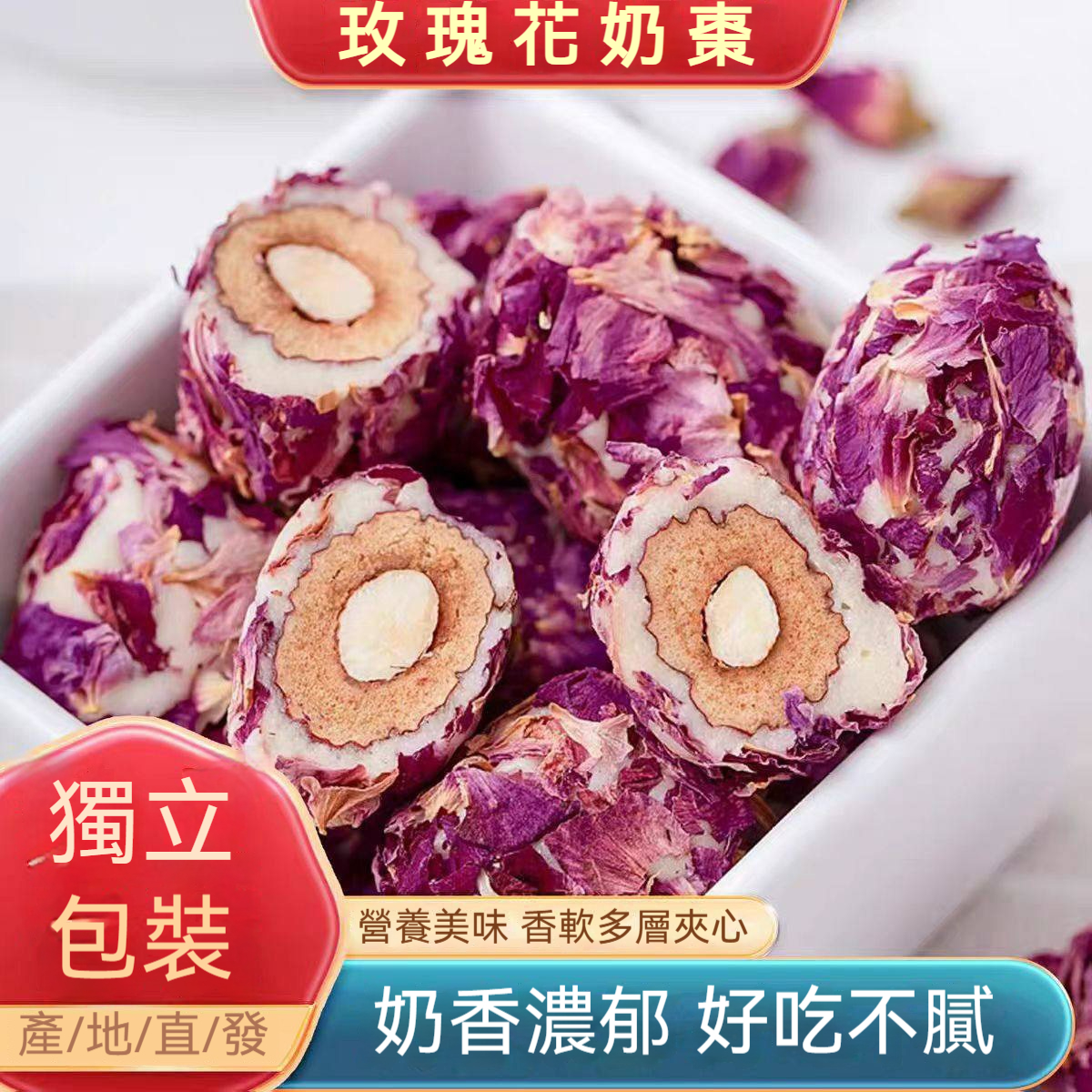 【玫瑰巴旦木奶棗】非油炸,純天然,用料實在0添加!口感濃郁,營養豐富,滿滿的奶夾棗